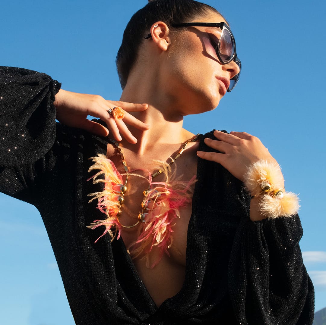 Maitre artisan Plumassière installée depuis 2025 à Cahors après une expérience de 15 années à Paris, AnaGold allie deux savoir-faire, le travail du métal et des plumes, pour créer des bijoux raffinés et des objets de décoration uniques, dont le design contemporain met en scène la beauté des plumes dans une éclatante palette de couleurs.