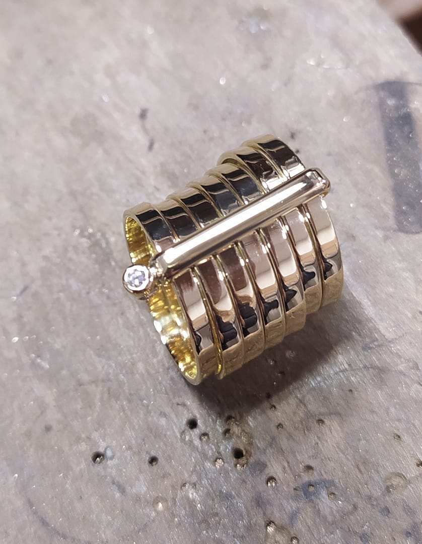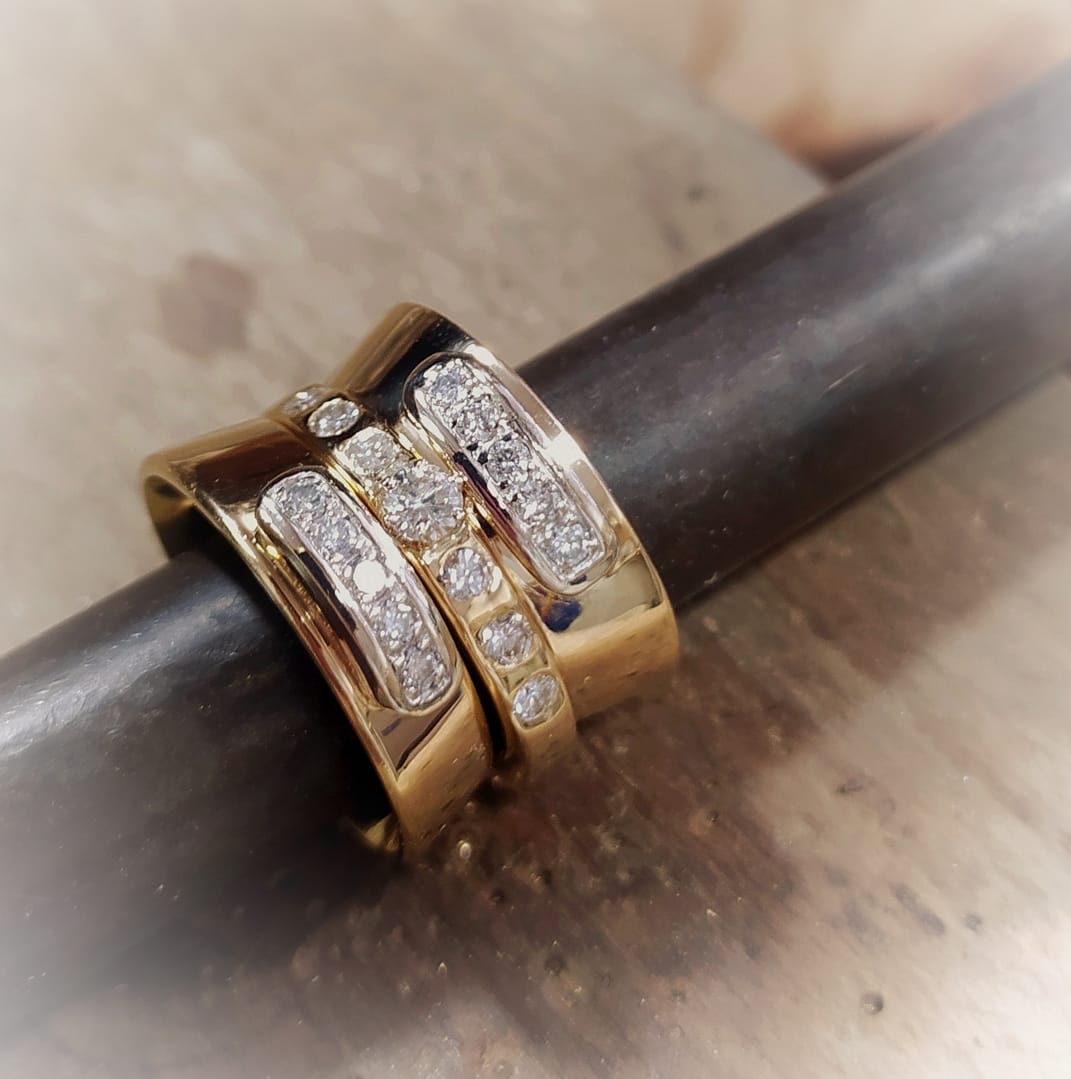En 2013, je m’installe à Thuir, j’avais un magasin mais pas assez créatif pour pouvoir laisser aller mes mains et ma tête à la réalisation de bijoux. Je déménage et je fais le choix d’un petit atelier où me suis ma clientèle. Je reçois sur rendez-vous, cela permet d’avoir un moment privilégié. Mes clientes peuvent me parler de leurs souhaits et je suis là pour mettre en œuvre des bijoux qui leur ressemblent grâce à l’échange et l’écoute. J’ai choisi de ne travailler que l’or, de la bijouterie classique. Simplicité, créativité et technicité sont vraiment pour moi ce qui ressemble le plus à mes réalisations. Je propose aussi un service de réparations et transformation, j’essaie toujours d’être de bon conseil.