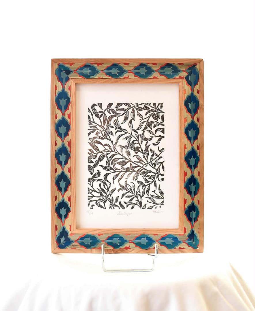 Après deux CAP en marqueterie et ébénisterie au lycée professionnel de Revel et deux ans à travailler en restauration de meubles d’art, je me suis installée en artisane d’art en mai 2025 en Corrèze puis dans un local au nord du Lot au Vignon-en-Quercy. Dans mon atelier je crée divers objets de décoration, explorant les possibilités de tous les savoir-faire qui me passionnent : la marqueterie, la gravure ornementale, les différentes techniques d’estampe au travers de la linogravure, l’ébénisterie, l’encadrement… Les matières se mélangent et le bois, la paille, le laiton et cuivre, le papier et le tissu s’associent en formant cadres, miroirs, boîtes et tableaux. Je pratique toujours la restauration de meubles et anime des ateliers d’initiation à la linogravure.
