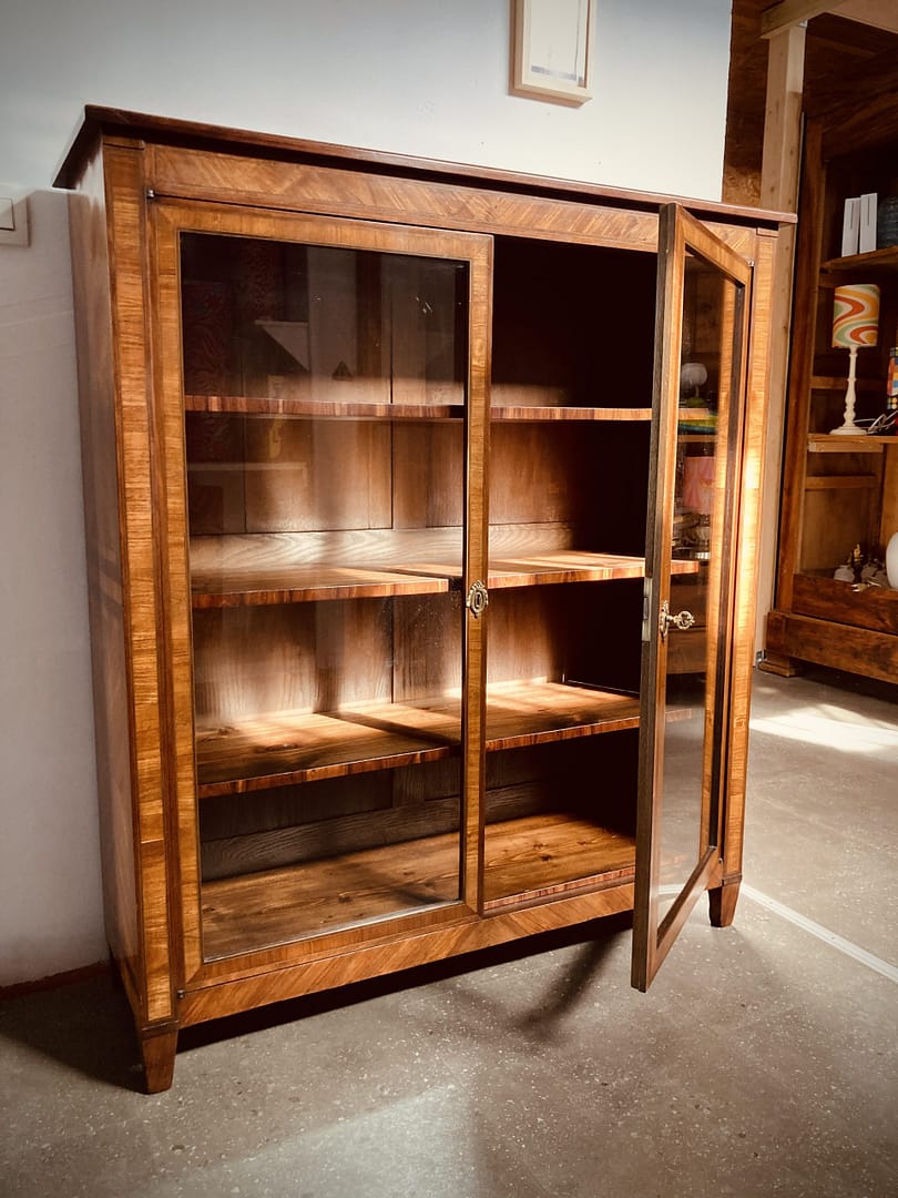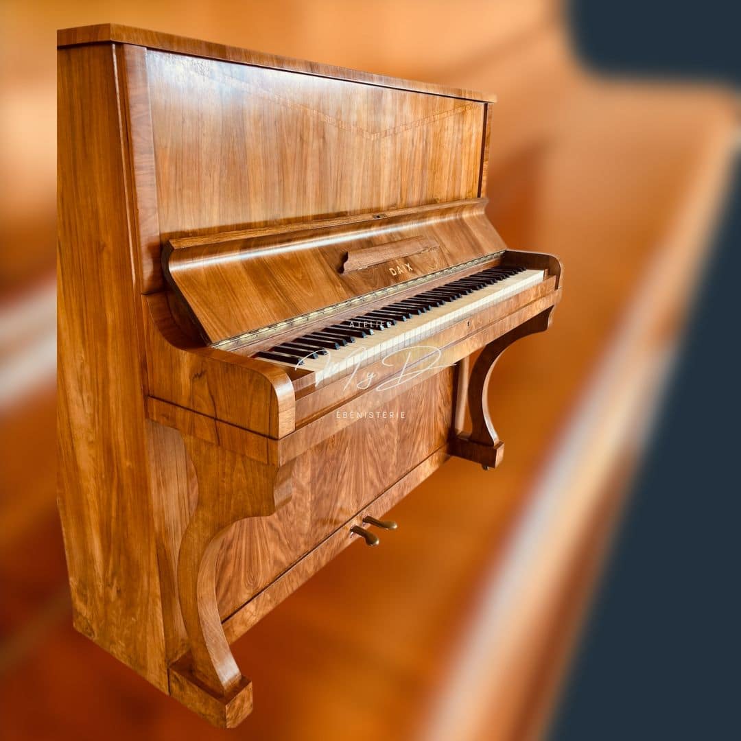 Mon champ d’intervention va de la réparation structurelle aux finitions. Je réalise les finitions traditionnelles – cire, rempli ciré, vernis ou vernis au tampon – ainsi que les recollages, réparations structurelles, placage et marqueterie.