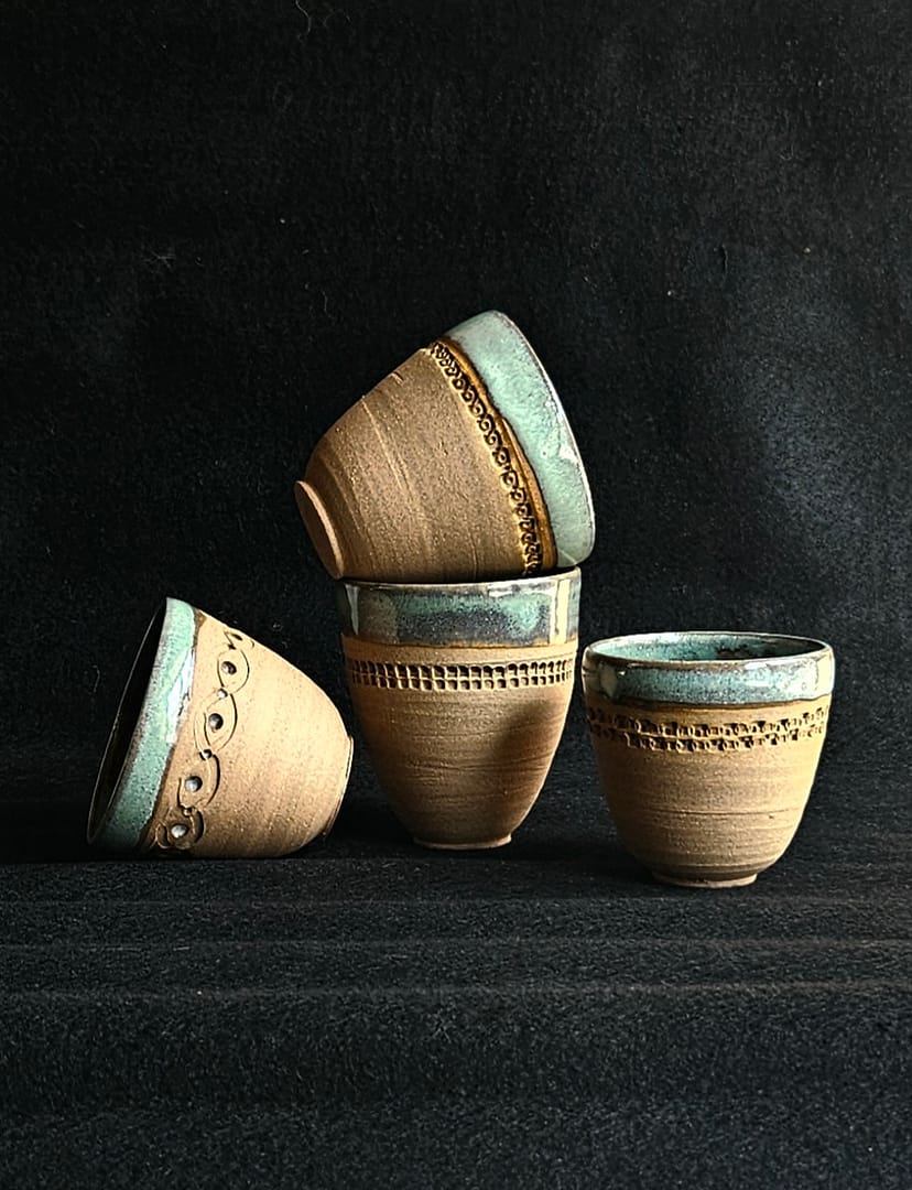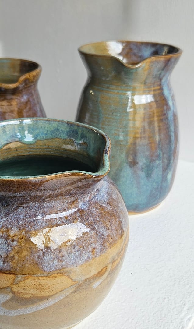 Je travaille le grès et la faïence, au tour comme à la plaque. Je choisis chaque terre en fonction de la pièce que je souhaite réaliser, en laissant la matière guider le geste. Je crée principalement des objets du quotidien, en pièces uniques ou en petites séries, et m’accorde parfois des parenthèses plus libres à travers de petites sculptures.