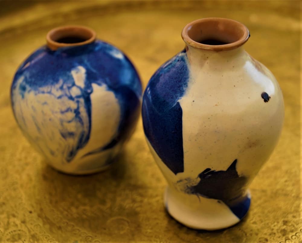 Lucile tourne des pièces utilitaires et décoratives en faïence avant de les décorer au moyen d’argile liquide, l’engobe, qu’elle colore avec des pigments.