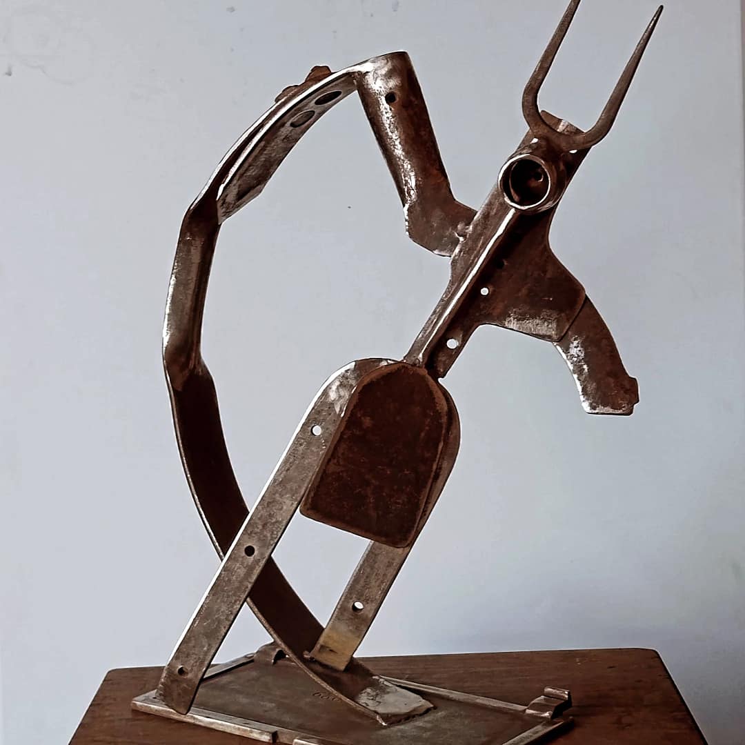 Mes sculptures sont réalisées à partir de vieux couverts, engrenages et autres ferrailles diverses.