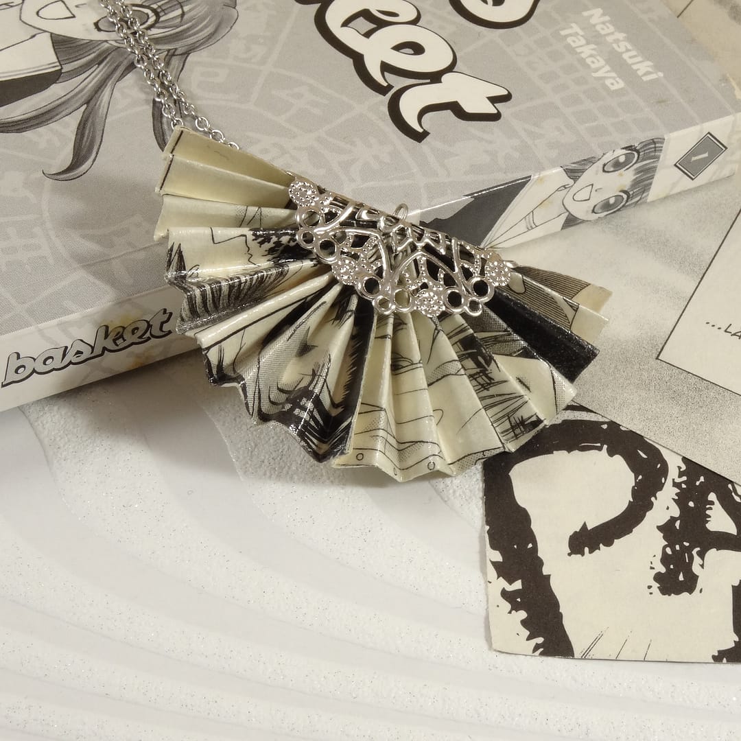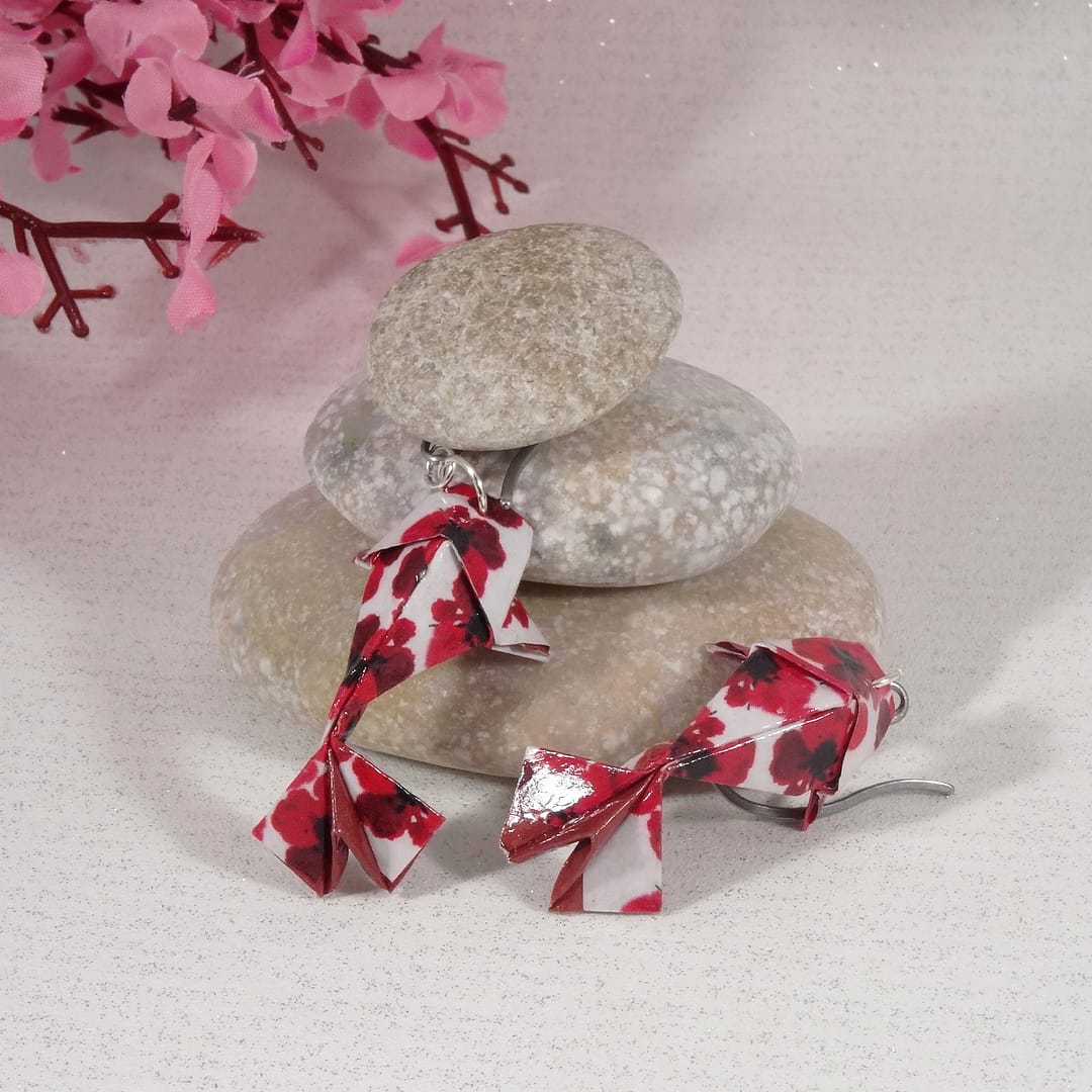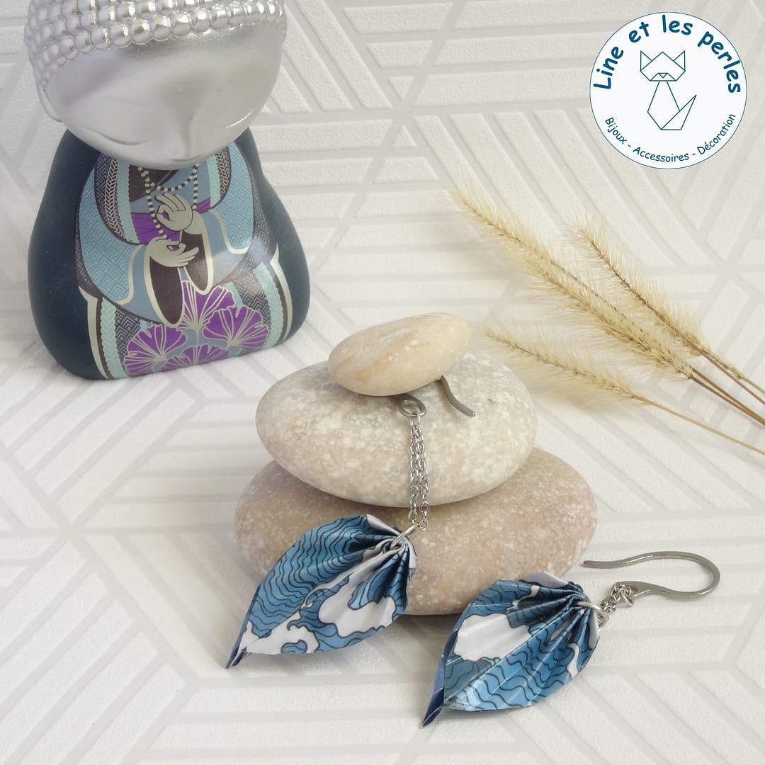 Aujourd’hui, je façonne à la main des bijoux et accessoires en papier plié, inspirés des symboles japonais.