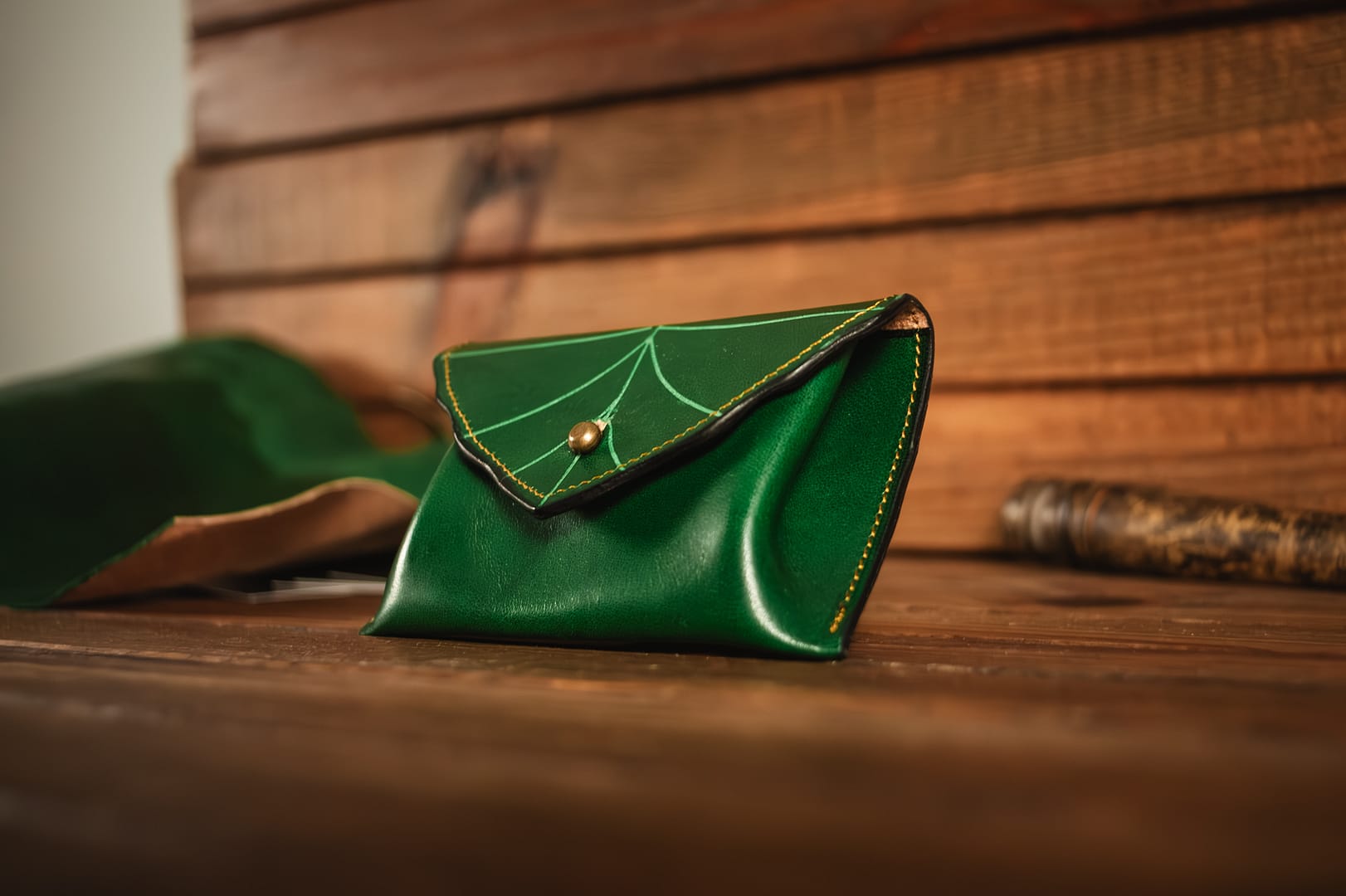 La plupart de mes articles de petite maroquinerie (portefeuilles, portemonnaies, étuis, porte-cartes…) sont cousus à la main. Une technique plus fastidieuse, mais qui apporte de la robustesse.