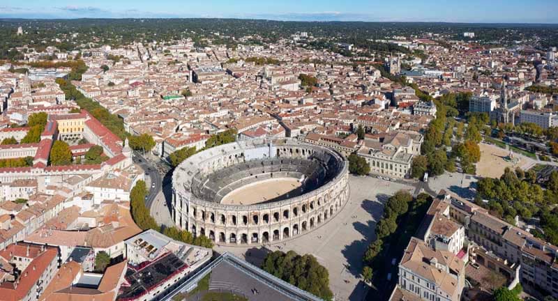 Créée il y a plus de 2000 ans, à la fin du premier âge de fer, autour d’une source divinisée que l’on appellera plus tard Nemausus (située dans les actuels Jardins de la Fontaine), l’ancien oppidum des Volques Arécomiques devint l’une des plus importantes colonies de la Narbonnaise. Traversée par la Via Domitia, route qui reliait Rome à l’Espagne, elle était située à un carrefour commercial et culturel de toute première importance.